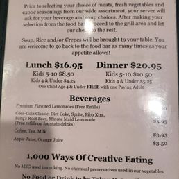 The menu features affordable lunch and dinner options, with special prices for kids aged 10 and under. The beverages, such as Strawberry Lemonade and Mango Lemonade, add a refreshing touch to your meal. Customers have raved about the delicious food, prompt service, and complimentary soup and ice cream served with every meal.