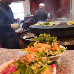 Food selection is very good, especially meat and seafood. The sauce selection is poor, as are the labels. The line is ridiculous! The cooks are nice and quick, but a second grill would be nicer. The nuts and sauces at the end are a nice touch. Also, the rice, soups, and wraps that come with the meal make it a better deal.